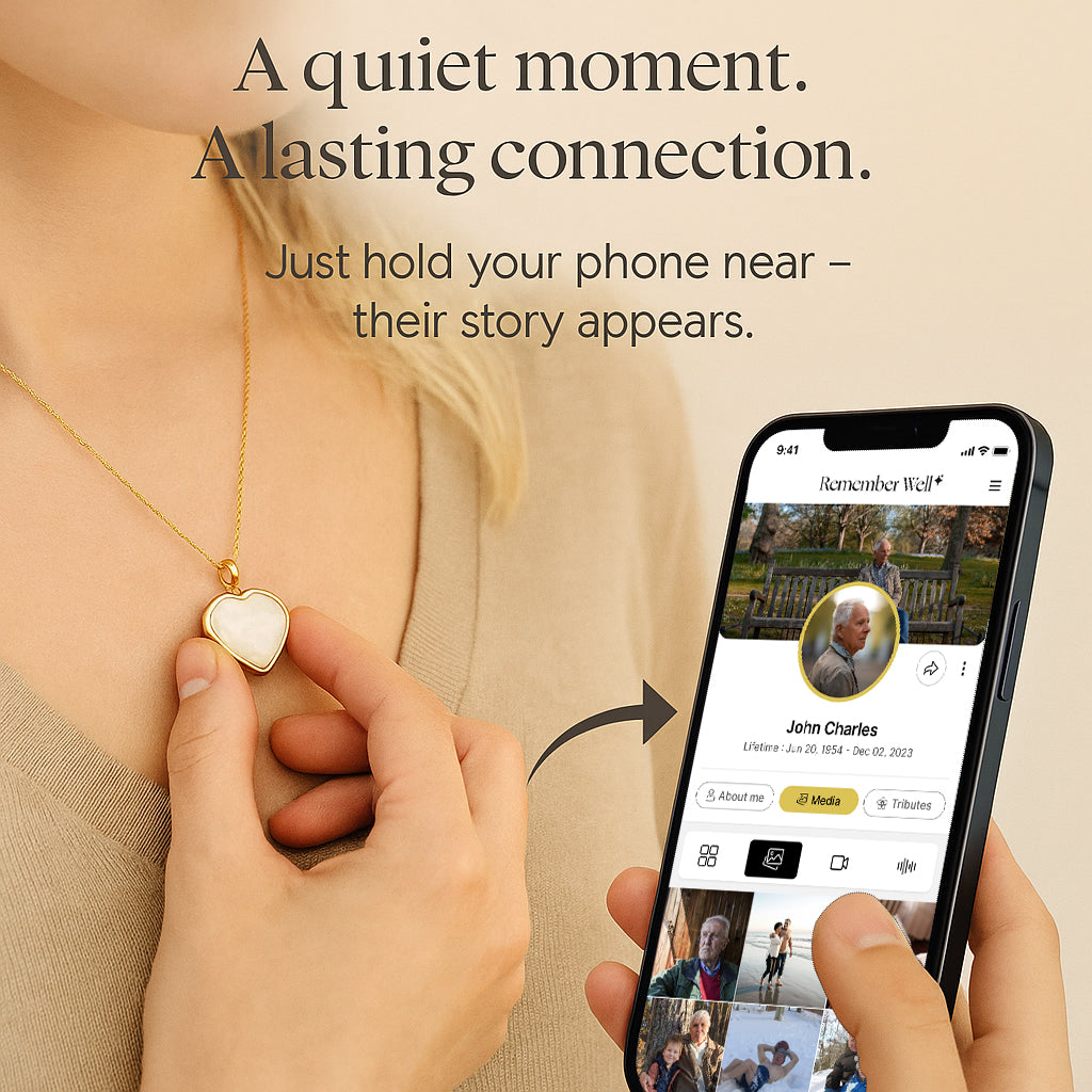 Share the memorial page with anyone, they dont have to hold their phone close to the necklace.