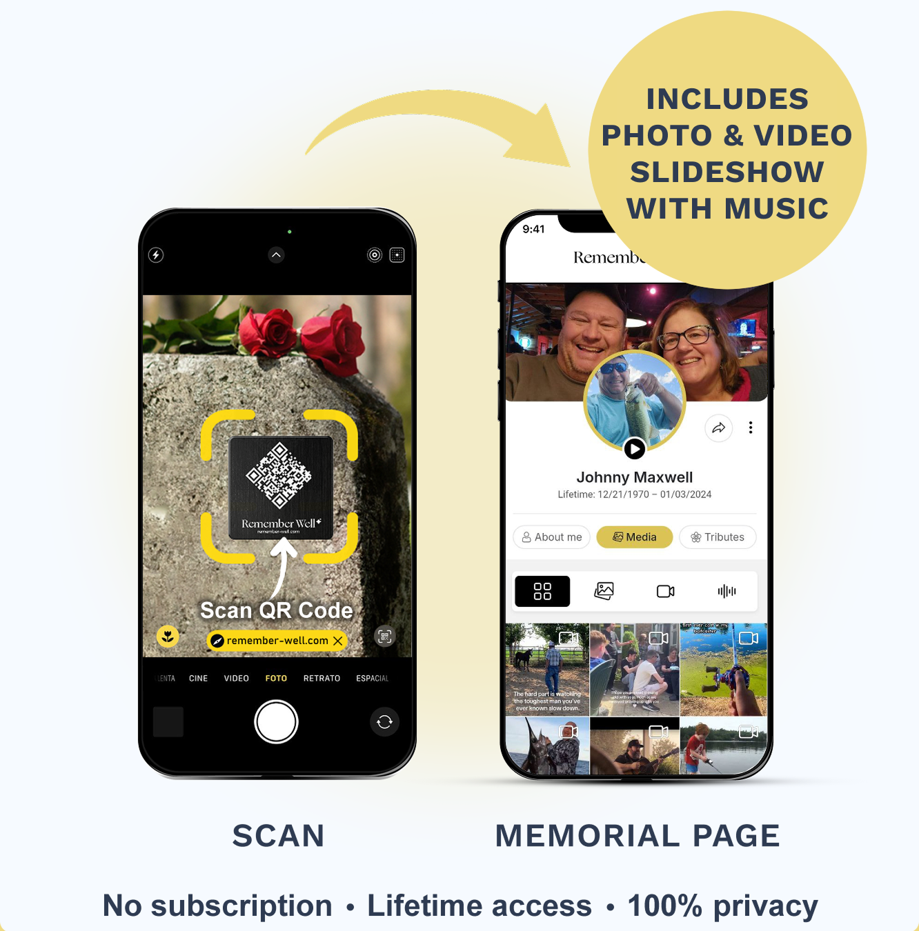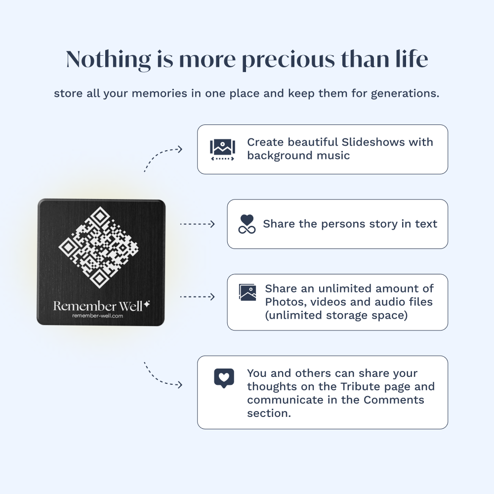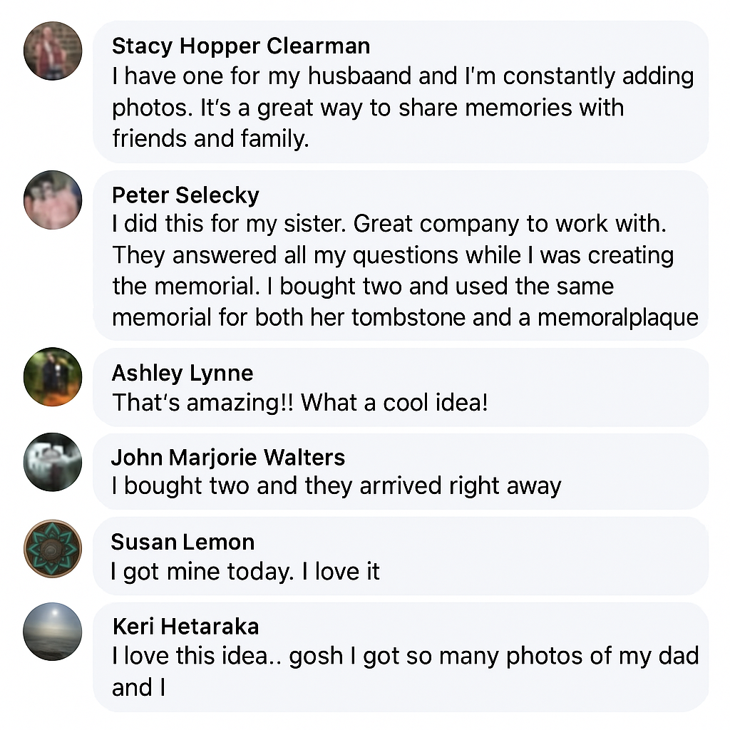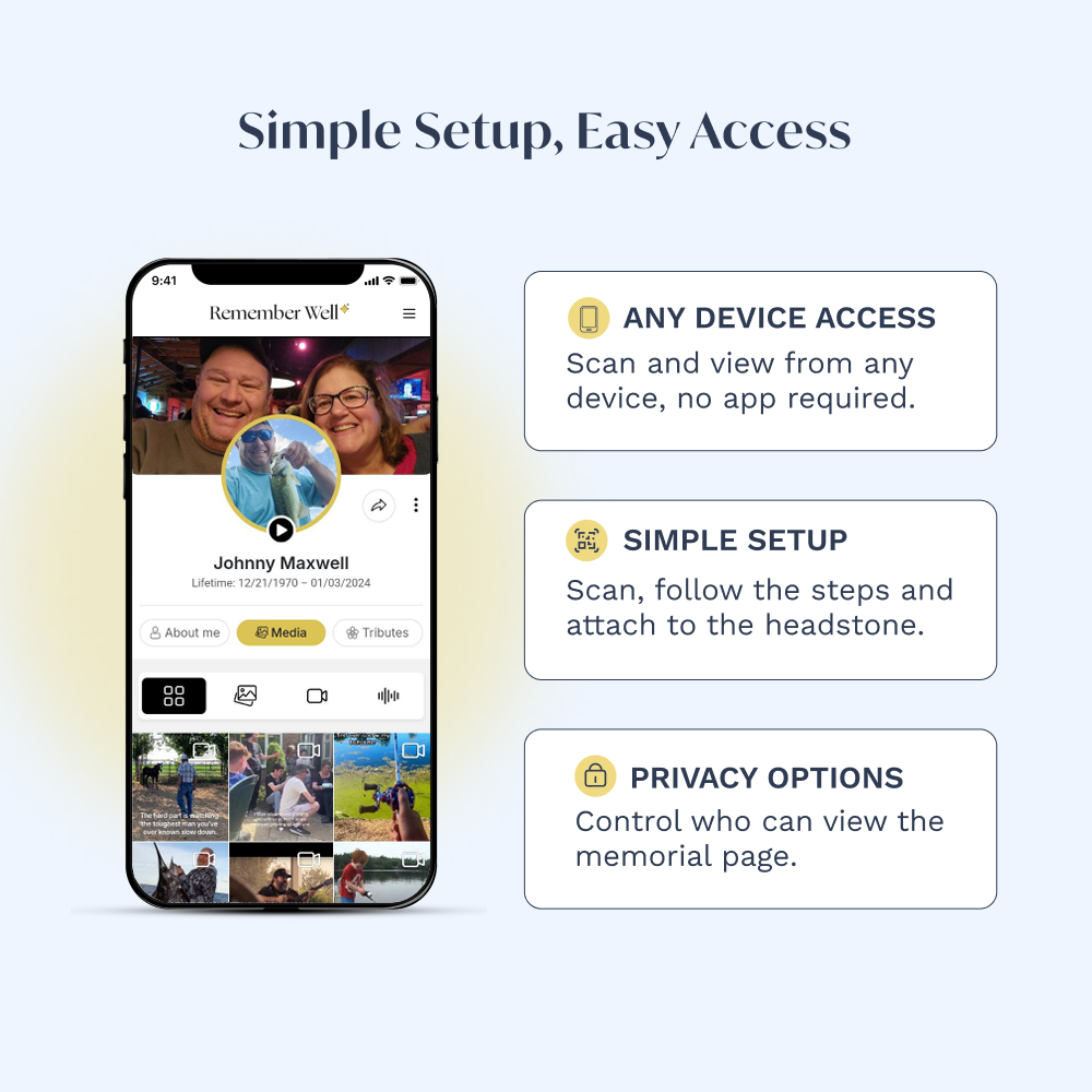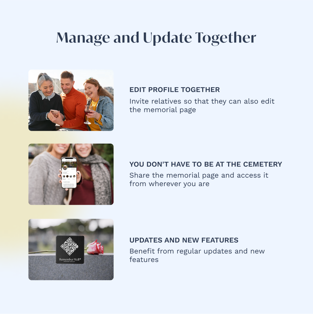 Access the memorial page anywhere, without visiting the cemetery.